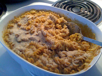 Well, I’ve come to learn that vegan mac and cheese is NOT an oxymoron. I tweaked a recipe from a vegan cookbook that my turkey-basting grandparents got me for Christmas - yay for awesome grandparents and inter-generational acceptance!