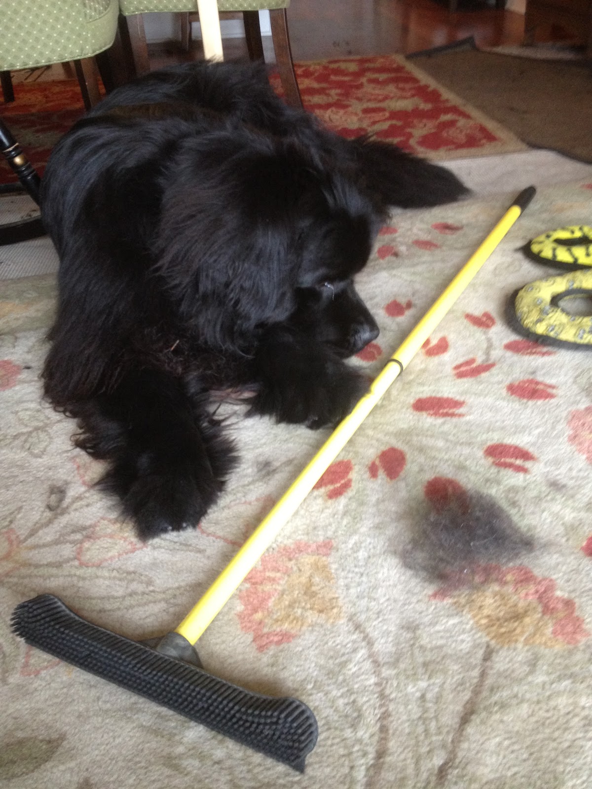 I haven’t bought another vacuum since. I have a compact apartment one for our little weekly needs, but I use something else to pick up after Teddy. Pet owners take heed! I think I’ve found the ultimate in pet-hair solutions. It’s not a Dyson, it’s not even a vacuum cleaner. It’s better, and it only cost me $10: The Fur Broom.